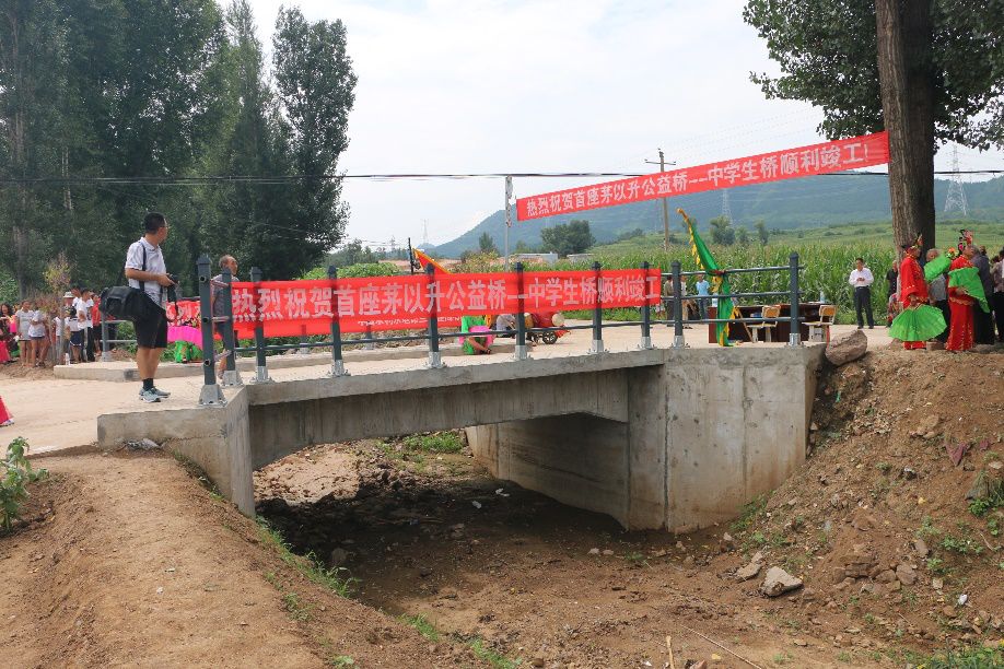 竣工儀式上,茅玉麟理事長說到,“2017年北師大附中的張欣源和她的同學找到我,說中學生也能參與到茅以升公益橋的建設中,之后他們組建了中學生社團,并通過義演、募捐、支教、藝術展等活動來募集資金,在眾多單位和愛心人士的幫助和支持下,全國首座由中學生籌資建設的‘茅以升公益橋——中學生橋’竣工了。”