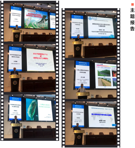 會議圍繞“海峽兩岸城市建設與防災技術”為主題展開研討,臺灣土木水利工程學會王炤烈理事長、臺灣日勝生集團沈景鵬副執行長、臺灣大學周南山教授,廣西住建廳副廳長、廣西大學楊綠峰教授,河海大學土木與交通學院院長高玉峰教授,北京工業大學路德春教授等海峽兩岸城市建設與防災技術領域的專家和學者先后就各自在城市土木工程建設與防災技術、理論方面的最新研究成果作了精彩的主題報告,主題報告環節由臺灣土水學會主任委員林其璋教授和廣西大學土木建筑工程學院院長梅國雄教授主持。