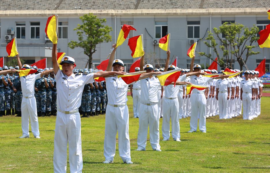 宣講會和頒獎儀式結(jié)束后,水兵進行風(fēng)采展示,首先進行的是方陣分列式,展示官兵身著白色海軍服或藍色迷彩服,以強大的陣容和恢宏的氣勢,踏著堅定的步伐從觀禮臺前依次走過。隨后是旗語、軍體拳格斗術(shù)等演練,戰(zhàn)士們眼神堅定,動作整齊劃一,氣勢恢宏,仿佛讓人見到了海面戰(zhàn)斗的烽火硝煙。觀眾們?yōu)閼?zhàn)士們的精彩演練所震撼,一時之間掌聲雷動,不絕于耳。