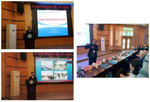 鄭皆連主任致開幕辭,他說:中國古橋作為千年中華文明發展體系中的一個重要分支,其建設經驗、理念、工藝技藝,對我國古橋及歷史文化研究、現代橋梁工程具有極大參考價值,是中華文化的歷史瑰寶,但是伴隨著社會的發展變遷,這些古橋正在以驚人的速度在大量消亡,古橋保護工作刻不容緩。鄭皆連主任和陳春陽副校長向中南大學古橋研究中心揭牌并授牌。至此,基金會古橋委員會已在浙江、江蘇、福建、湖南四省設立了七個古橋研究中心,吸納了一批古橋研究專家和熱心人士。