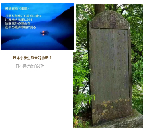 他們在除夕之夜盤坐在寒山寺鐘樓的廣場上,一邊背誦著張繼的名詩,一邊聆聽著108下的鐘聲,以求在新的一年里帶來平安和好運。 據說日本的小學生幾乎都會背誦這首詩。