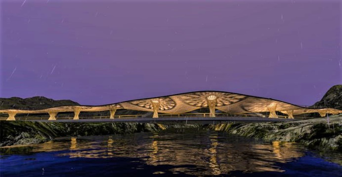 從正向來看,該建筑幾乎為二維結構,而側方向則是立體又三維的結構,多變的結構形態能有效消除審美疲勞。在整個橋的景觀設計上,秉持著地域性、文化性和整體性原則,打造“一橋一景”,將適用、美觀相結合。