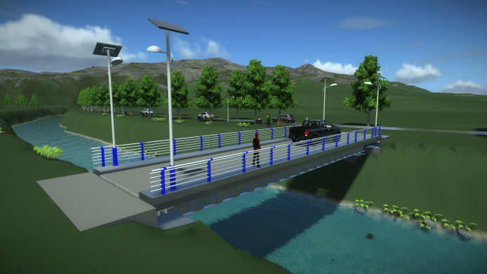 橋面照明設施采用以光伏板供電為主的太陽能路燈。