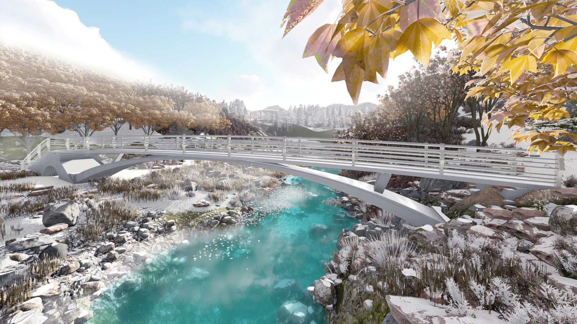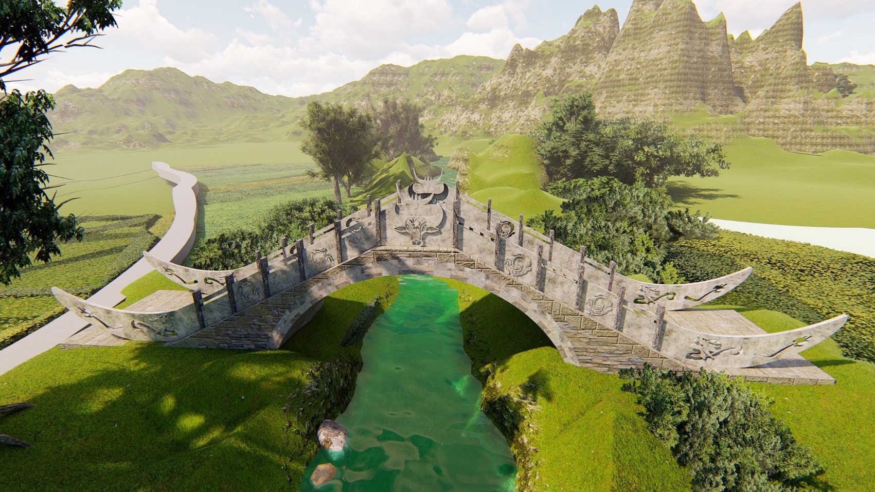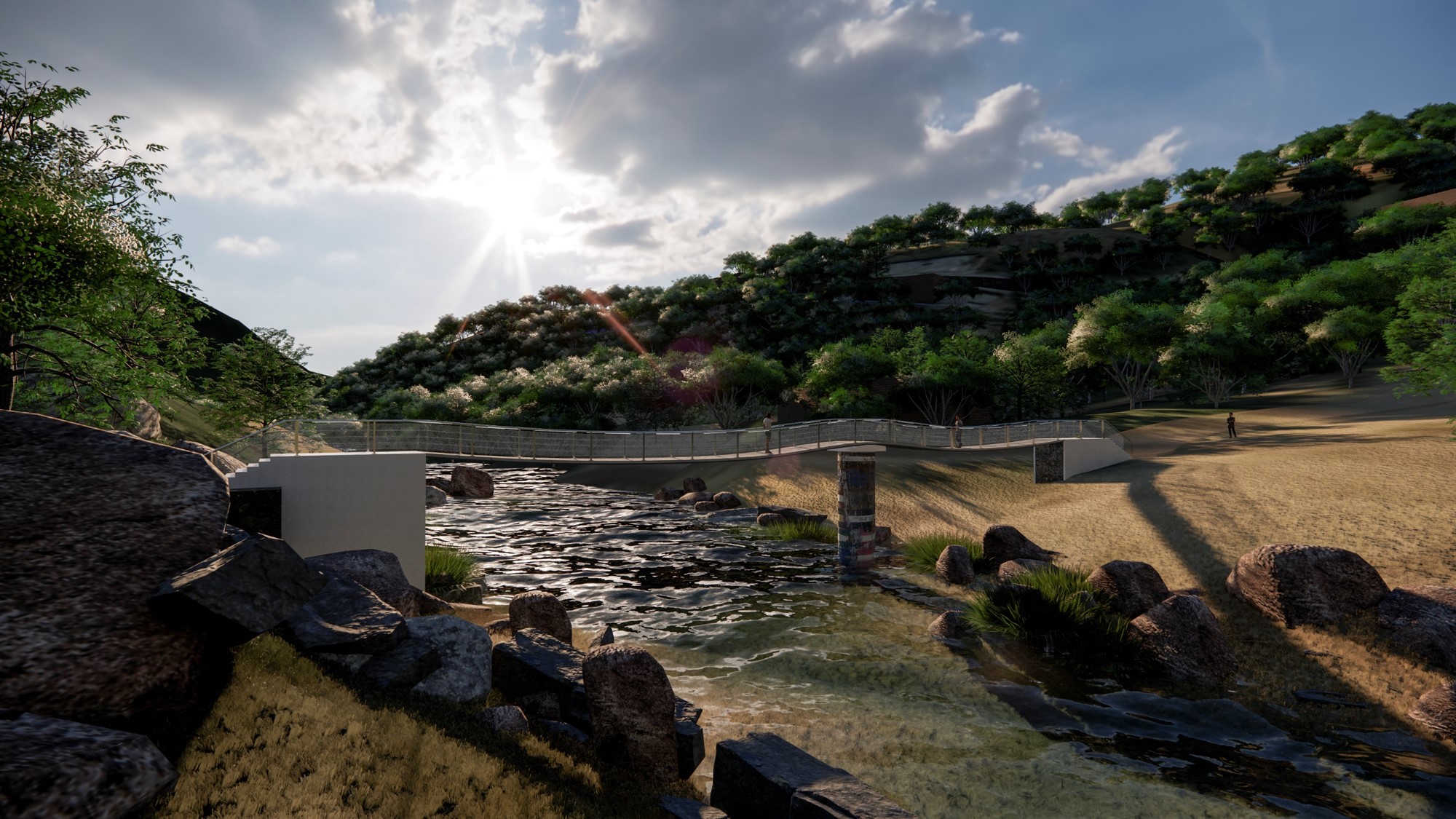 “節(jié)橋”,以橋?yàn)橹瘢c山巒起伏、連綿不絕的環(huán)境特色融為一體。與竹林婆娑、流水潺潺的田園意境相得益彰。體現(xiàn)了奉節(jié)竹園鐵血古鎮(zhèn)“臨大節(jié)而不可奪”錚錚氣節(jié)。