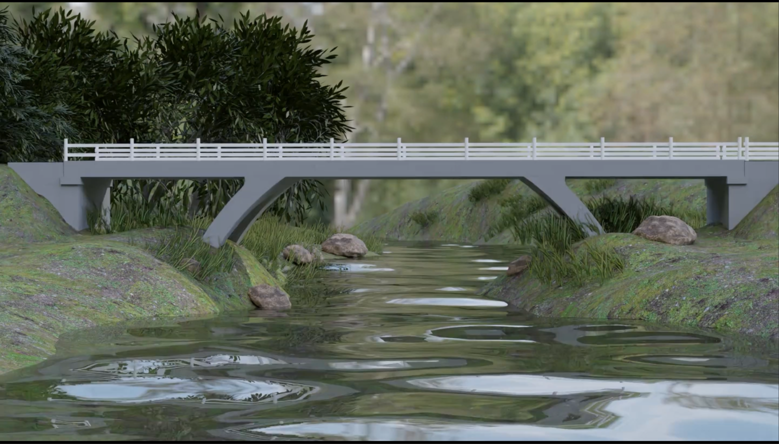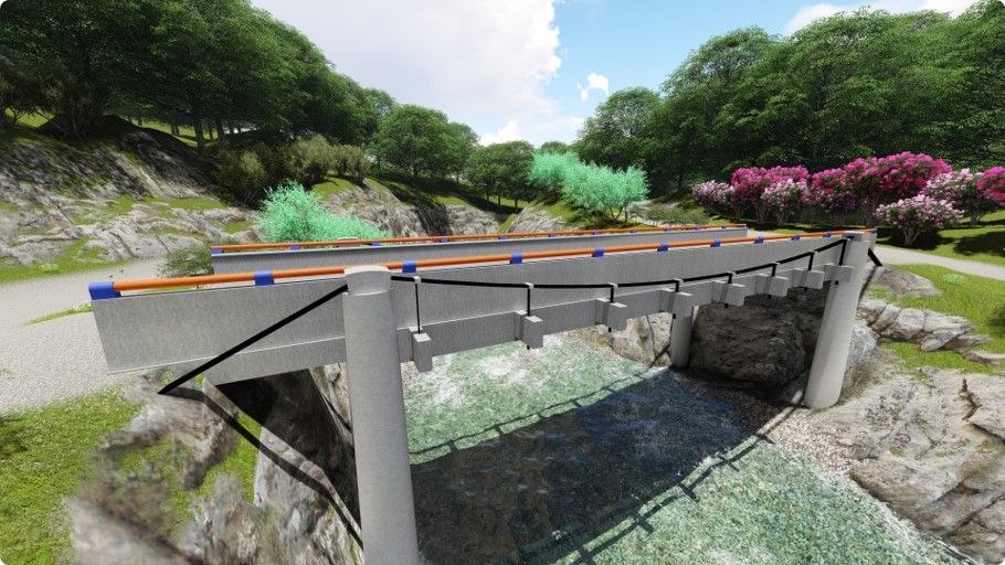 作品位于重慶市彭水縣保家鎮(zhèn),橋梁為單跨15米的鋼-混凝土疊合梁。