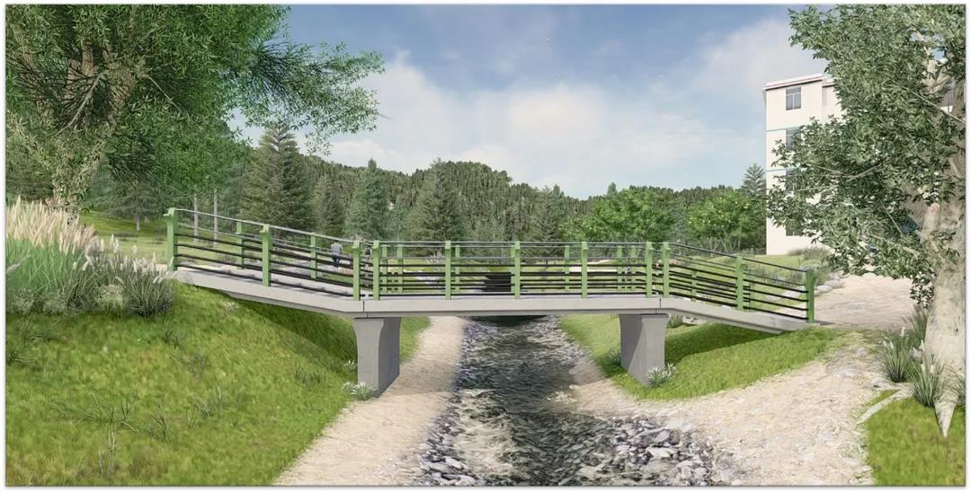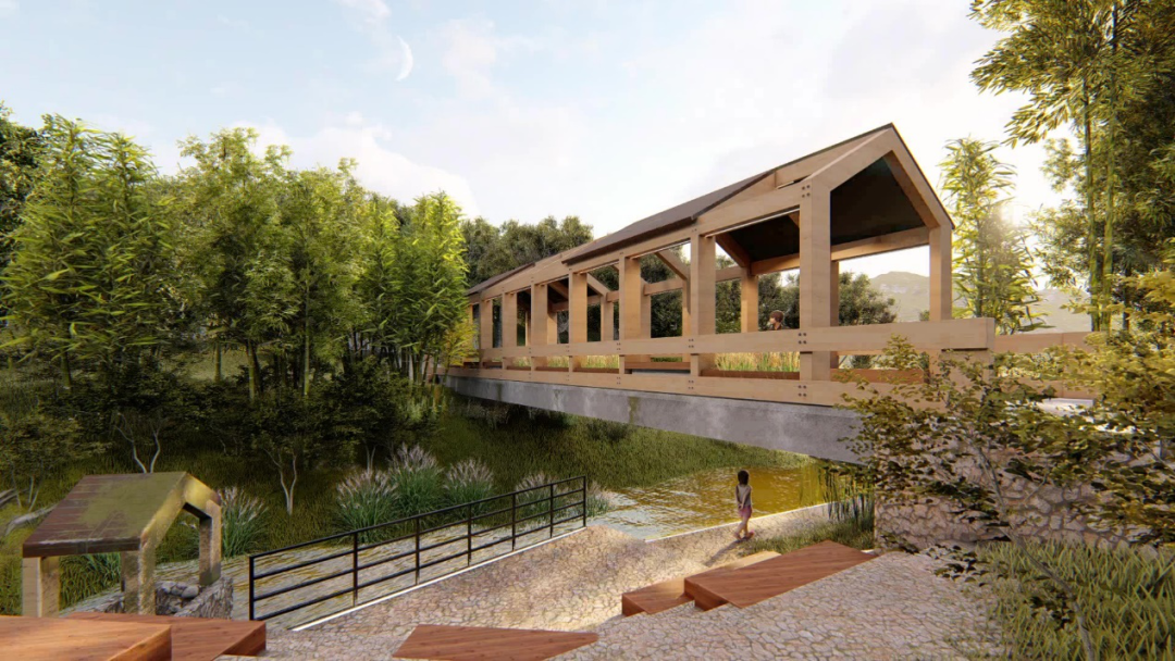 橋梁借鑒廊橋形式,設(shè)置能遮風(fēng)避雨的木結(jié)構(gòu)廊房,橋上空間既為村民提供休憩、聊天等公共空間,又豐富鄉(xiāng)村文化氛圍。
