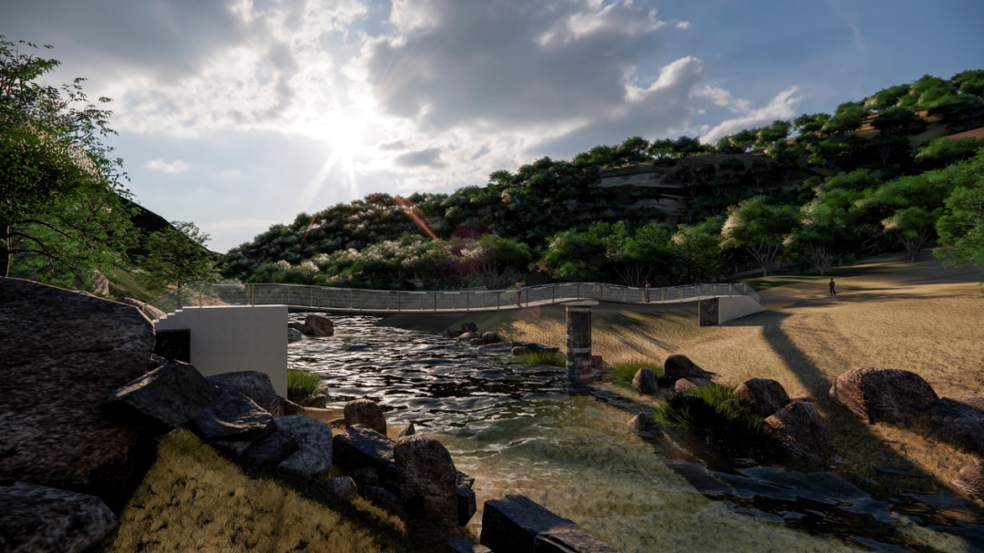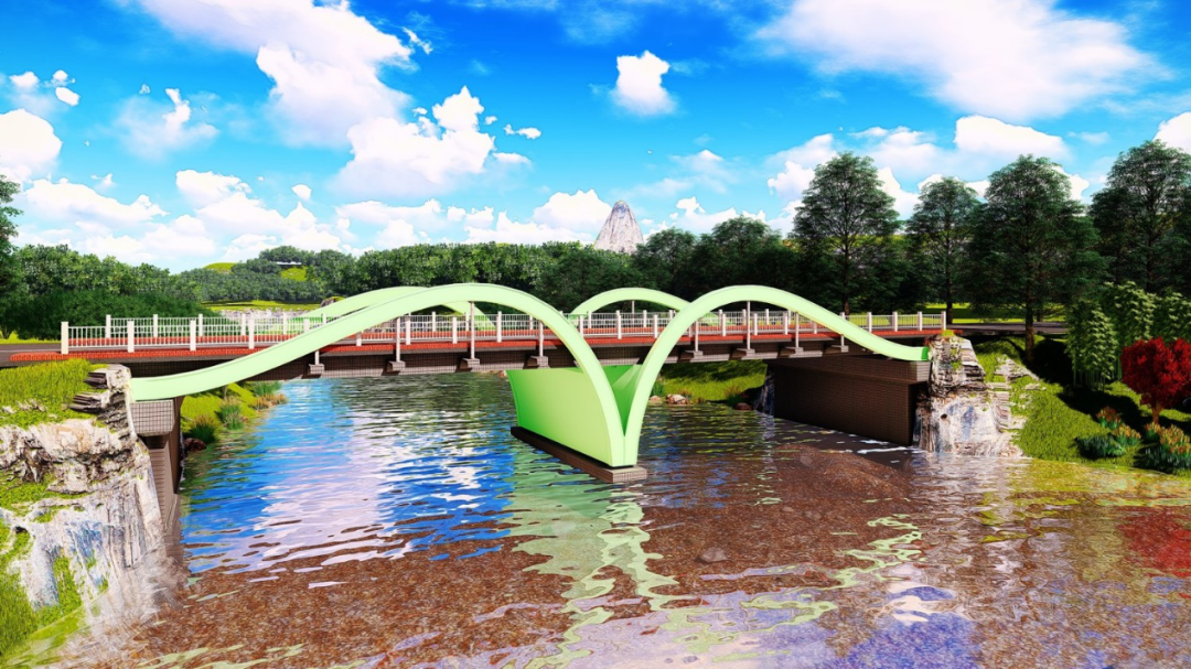 “節(jié)橋”,以橋?yàn)橹瘢c山巒起伏、連綿不絕的環(huán)境特色融為一體。與竹林婆娑、流水潺潺的田園意境相得益彰。體現(xiàn)了奉節(jié)竹園鐵血古鎮(zhèn)“臨大節(jié)而不可奪”的錚錚氣節(jié)。