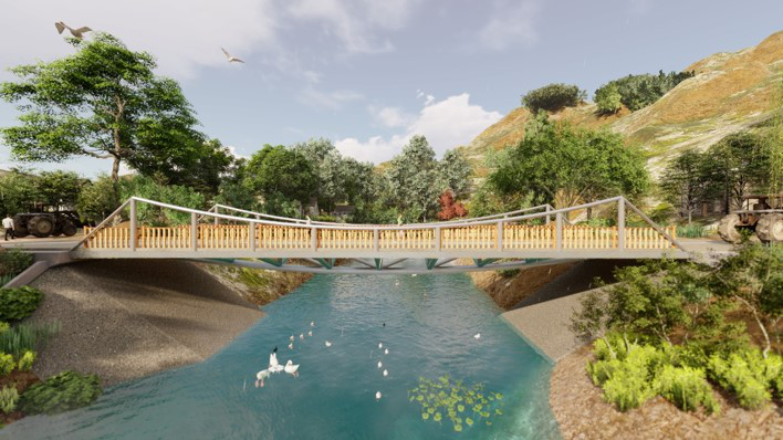 此橋是首屆茅以升公益橋設(shè)計(jì)大賽中北京交通大學(xué)的獲獎(jiǎng)作品“和木橋”。橋梁于2018年3月建成通行,該橋的建成將方便附近五個(gè)村子的村民出行,孩子們將不再需要冒險(xiǎn)趟水過(guò)河,鄉(xiāng)親們因?yàn)檫@兩座橋增加了與外部世界的物質(zhì)交流。