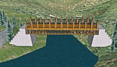 橋梁為單跨24米的木桁架人行橋,橋?qū)?米。