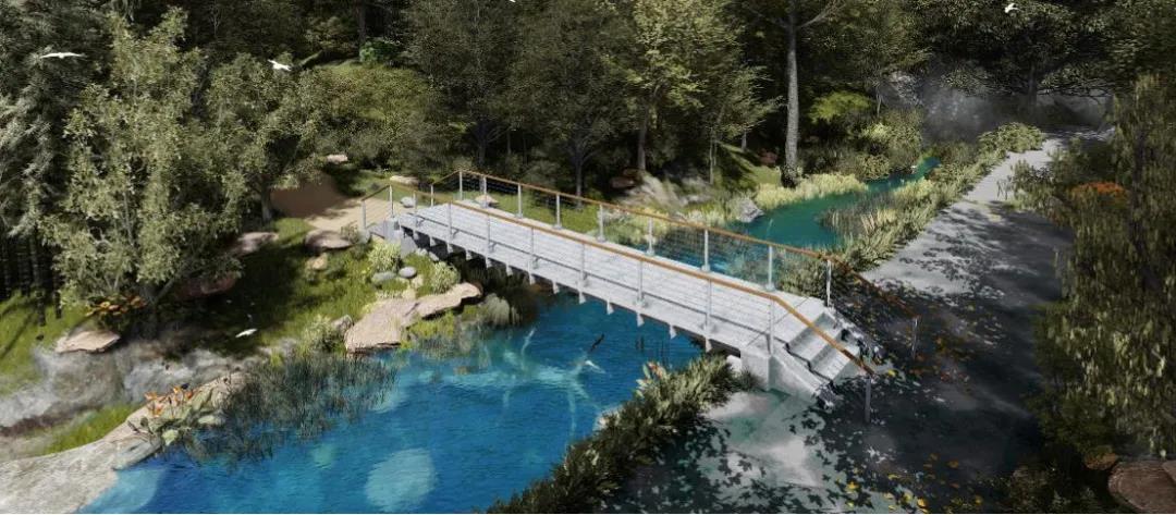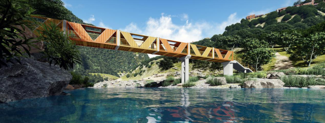 采用木材結(jié)構(gòu)的橋梁既經(jīng)濟(jì)又環(huán)保,很好的凸顯公益的理念。