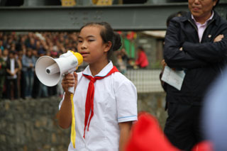 在莊嚴(yán)的國歌聲中,全體人員肅立在操場上,舉行了升旗儀式。可愛的孩子們還為領(lǐng)導(dǎo)們佩戴了紅領(lǐng)巾。各位領(lǐng)導(dǎo)觀看了孩子們的精彩表演。