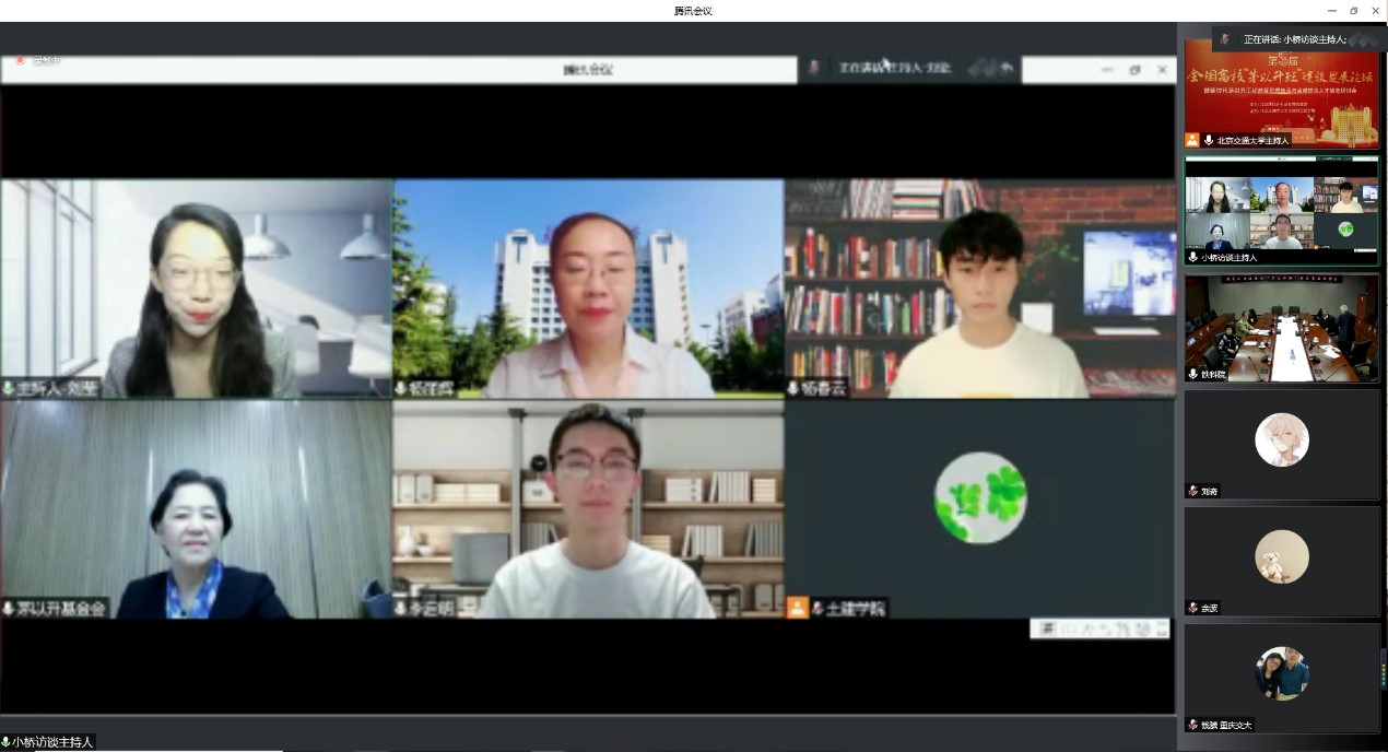 小橋心聲專訪風(fēng)采展示環(huán)節(jié)中,基金會特邀專家盛黎明、北京交大土建學(xué)院副教授楊麗輝以及“茅以升公益橋”團隊學(xué)生代表參加線上專訪。訪談從基金會建立“茅以升公益橋”項目的緣起、北京交大建橋助力脫貧攻堅過程以及師生踐行茅以升精神等方面,講述一批志愿造橋人的初心與熱血,體現(xiàn)了項目參與者們立大志、明大德、成大才、擔(dān)大任的情懷擔(dān)當(dāng),直播間頻頻發(fā)來點贊留言。