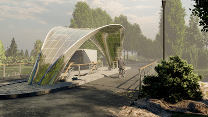 “松花渡橋”設計出發點源于對在地材料與場地特色兩方面的思考。一方面,黑龍江五常林木、鋼鐵資源豐富,且木材為可再生資源,因此考慮使用混凝土結合鋼、木材質的橋體設計。另一方面,民意鄉周遭連天芳草、景色秀麗,在造型設計方面,決定使橋體以靜默、謙遜的姿態融入造化自然中,并充分發揮木材的近人性質,營造溫馨恬淡的鄉野氛圍。因此橋身欄桿與鋪地的設計簡約蘊藉,將起圍護作用的欄桿與鋼結構相結合,彰顯結構美感。在此基礎上,結合五常當地盛產稻米的風土,在鋼結構欄桿細部設計中加入抽象化的稻穗元素,以其為燈效,結出年年歲歲飽滿溫暖的希望。