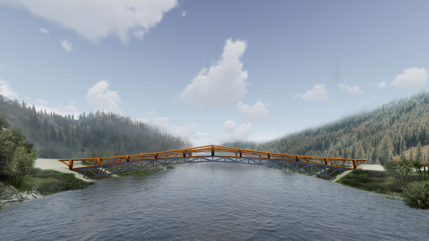 橋梁主體采用鋼桁架橋型,外觀輕盈通透,線型優美舒緩,與周圍自然環境融為一體,有著良好的視覺效果,具有較強的觀賞性,建成之后可成為額爾格圖鎮額爾敦嘎查的地標性建筑。