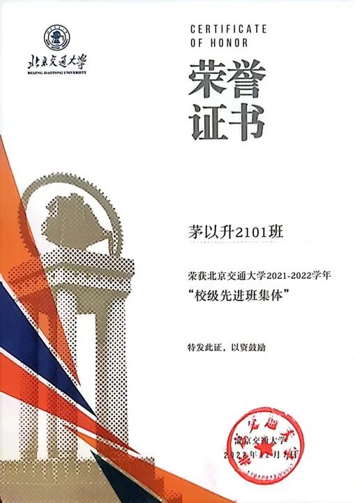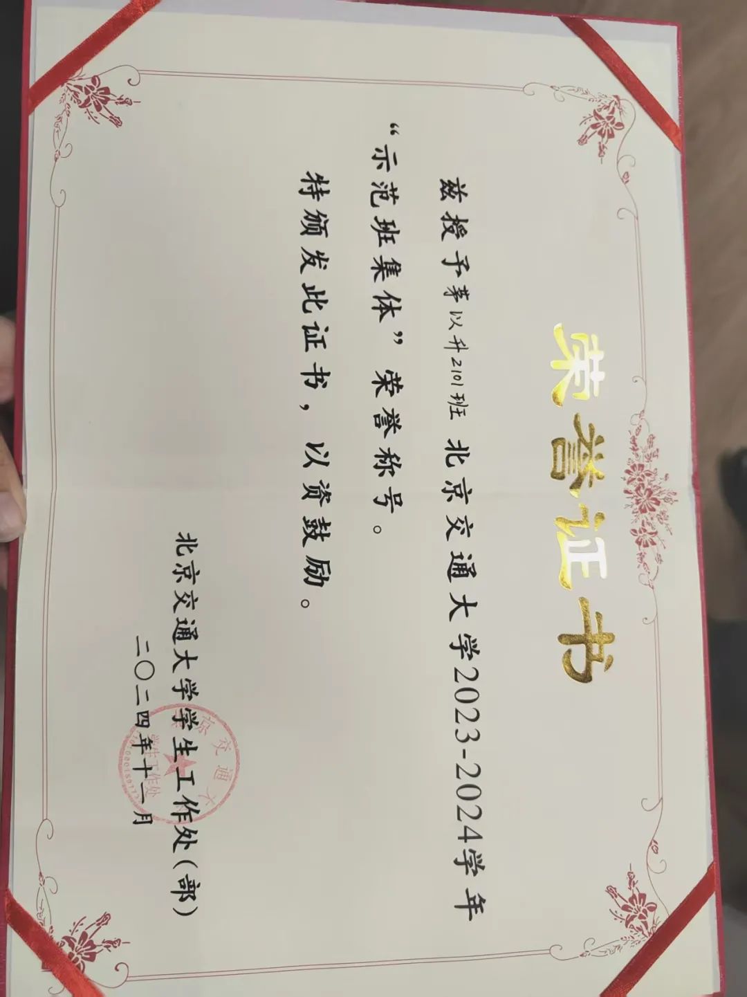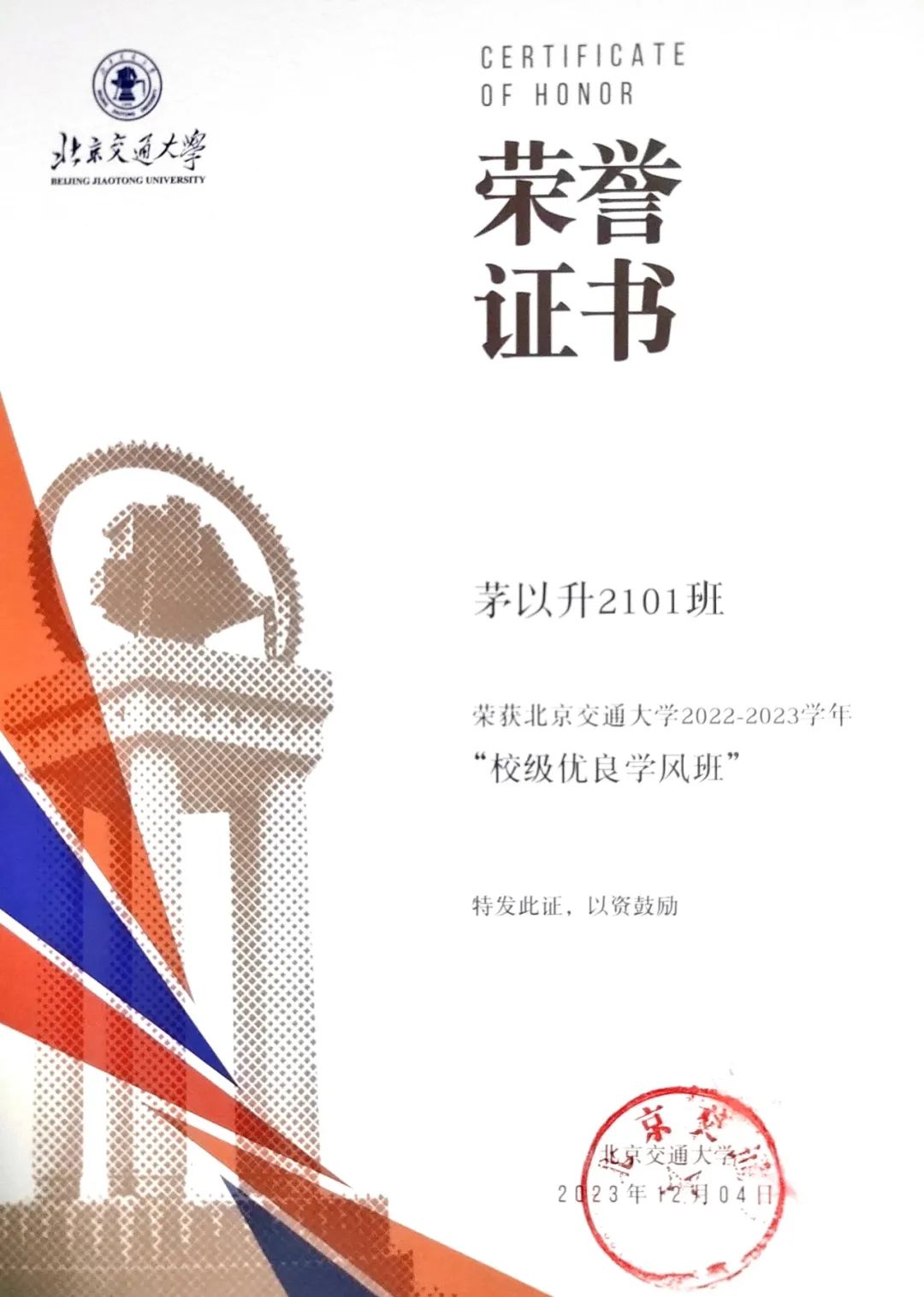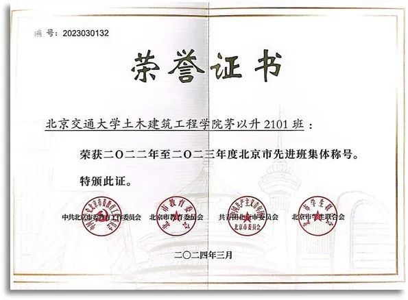 獲北京市先進班集體,連續3年獲校級優良學風班。