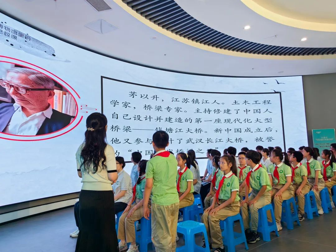 活動最后,鎮(zhèn)江市第三中學校長陳靜作為思政教師代表發(fā)言,分享了校館合作育人的實踐經驗。在微課展示環(huán)節(jié),鎮(zhèn)江市中山路小學校長徐琳琳、江蘇省鎮(zhèn)江第一中學黨委書記吳鐵俊、江蘇科技大學馬克思主義學院黨總支書記郭昭昭分別以《從小有個夢 立志造大橋》《潮涌千劫后 虹臥萬古心》《天塹變通途 精神永傳承》為課題,為大中小學生們上了一堂主題為“造橋?筑夢?鑄魂”的大思政課,講述了茅以升老先生的主要事跡以及“愛國、科學、奮斗、奉獻”的茅以升精神,激勵同學們傳承科學家精神,勇?lián)鷷r代使命。通過在紀念館內沉浸式授課和互動,展現了茅以升精神在不同學段思政教育中的創(chuàng)新實踐。