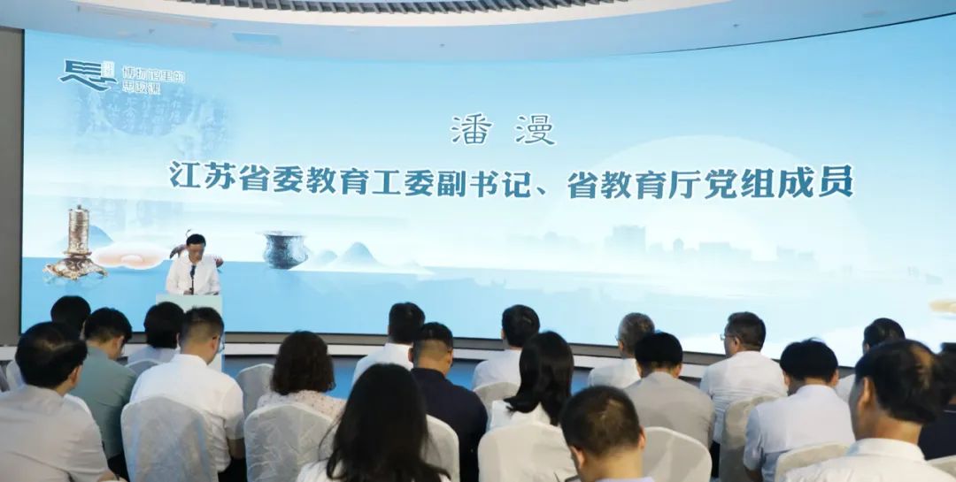 活動在《弘揚科學家精神,共筑科技強國夢》的暖場片中拉開帷幕。潘漫副書記在致辭中首先指出辦好思政課是習近平總書記始終關心的大事。黨的十八大以來,總書記圍繞思政課建設作出一系列重要論述,為我們的工作提供了根本遵循。結合本次活動,潘書記充分肯定了鎮(zhèn)江市“1+2+4+N”大中小學思政教育一體化建設工作的相關做法和成績。他強調,要進一步凝聚多方資源力量,構建館校協(xié)同育人格局,讓思政課建設更加有力;要繼續(xù)開發(fā)特色精品課程,打造“一城一館一課”特色品牌,讓思政課教學更加有溫度;要強化雙向培養(yǎng),充分發(fā)揮好“博物館里的思政課”備課組作用,讓思政課教師更好成長。希望鎮(zhèn)江市能以此次活動為新的起點,不斷豐富“博物館里的思政課”建設內涵,全面深化思政課改革創(chuàng)新。