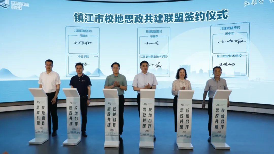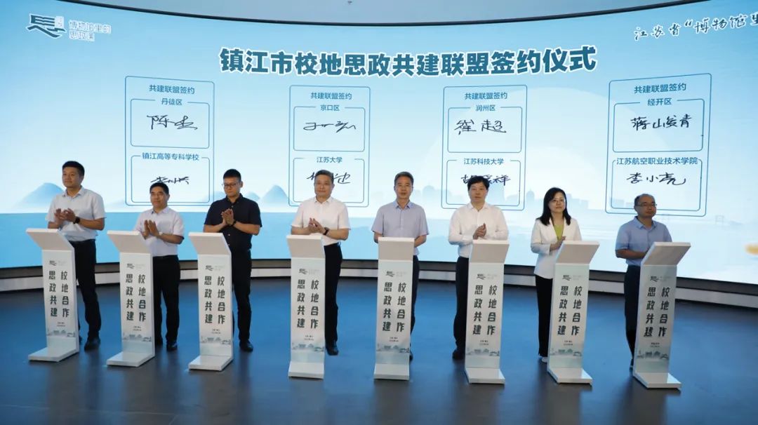 活動現場,鎮(zhèn)江市各市、區(qū)及在鎮(zhèn)高校進行了思政共建聯(lián)盟協(xié)議簽約,市委宣傳部、市教育局、市文廣旅局發(fā)布了研學實踐地圖,并為鎮(zhèn)江市“大思政課”實踐研學場館授牌。