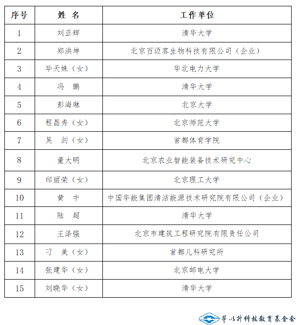 根據(jù)《茅以升北京青年科技獎(jiǎng)條例》、《茅以升北京青年科技獎(jiǎng)條例實(shí)施細(xì)則》有關(guān)規(guī)定有關(guān)要求,經(jīng)茅以升北京青年科技獎(jiǎng)評審委員會(huì)初評、終評,推選劉亞輝等15人入選第二十屆茅以升北京青年科技獎(jiǎng)。
