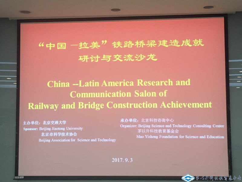 2017年9月3日上午,由茅以升科技教育基金會及北京市科協(xié)共同舉辦的“中國——拉美”鐵路橋梁建造成就研討與交流沙龍在北京交通大學(xué)召開。本次研討是繼 “共創(chuàng)未來:中拉城市規(guī)劃與城鎮(zhèn)化發(fā)展交流對話“2017年拉美國家城鄉(xiāng)規(guī)劃與公共交通發(fā)展部級研討班””后的又一高端活動,旨在促進有關(guān)中國與拉美國家關(guān)于城鎮(zhèn)化、城市規(guī)劃建設(shè)、交通基礎(chǔ)設(shè)施,特別是高速鐵路及橋梁建造成就的討論交流,并介紹和展示了中國在這些領(lǐng)域的技術(shù)和成就,對推動中國城市與基礎(chǔ)設(shè)施建設(shè)走出去起到了積極的作用。