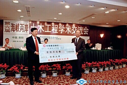 2009年9月,在第六屆海峽兩岸土木工程學術(shù)交流會上,貴州大學通過臺灣土木水利工程學會向遭受“莫拉克”臺風襲擊的臺灣災區(qū)人民捐贈人民幣10萬元。