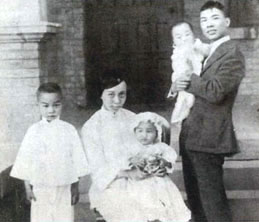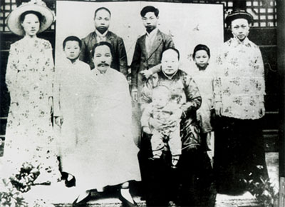 1913年茅以升在南京與家人合影(前排左為其父茅乃登,右為其母韓石渠,后排右三為茅以升) | ||