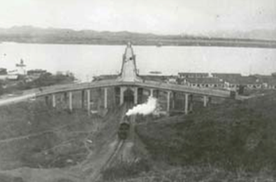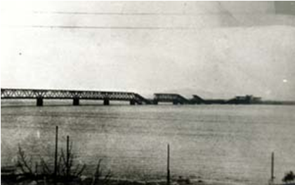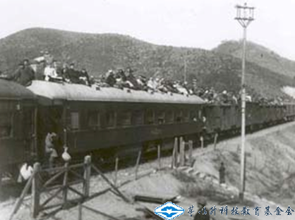為中華民族抗戰做出了巨大貢獻。圖為滿載難民和戰略物資的列車通過大橋駛向大后方。