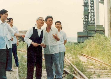 八十年代,茅以升時刻關心祖國的橋梁鐵路建設。圖為茅以升視察鐵道部建橋工地。 |