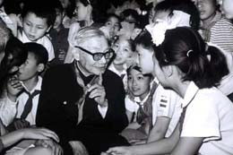 茅以升十分熱愛與青少年在一起,向他們傳授科普知識。 |