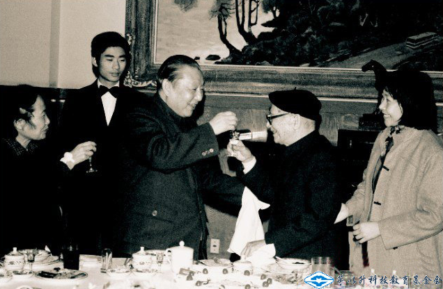 那是1986年1月9日,中國科協、九三學社中央、北京市科協等單位在全國政協三樓會議廳召開座談會,祝賀曾任全國政協副主席、九三學社中央副主席的中國科學院院士、我國著名橋梁工程專家、教育家茅以升從事科研教學科普工作65周年暨90壽辰。1986年2月27日,習仲勛代表中共中央在人民大會堂宴請茅老及家人。這張照片生動記錄了當時習仲勛(左三)向茅以升(右二)敬酒的情景。據茅以升女兒茅玉麟回憶,習仲勛親切與茅老噓長問短,熱情問候,給大家留下深刻印象。習仲勛還在宴會菜單上簽上自己的名字。