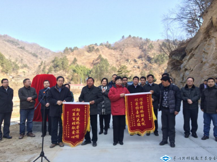 1月18日,“茅以升公益橋——鐵道工程師橋”揭牌儀式在陜西省佛坪縣長角壩鎮(zhèn)下沙窩村舉行。基金會(huì)秘書長茅玉麟與佛坪縣人大常委會(huì)主任鄒恩貴共同為公益橋建成啟用揭牌。中國鐵路總公司工管中心副主任盛黎明,中鐵第一勘察設(shè)計(jì)院集團(tuán)有限公司副院長魏州泉,中鐵第一、二、三、四、五設(shè)計(jì)院,中鐵大橋勘測(cè)設(shè)計(jì)院、中鐵上海設(shè)計(jì)院等鐵路行業(yè)設(shè)計(jì)單位代表,中鐵十二局西成客專項(xiàng)目部代表,佛坪縣相關(guān)部門領(lǐng)導(dǎo)和鎮(zhèn)村干部、群眾代表參加了揭牌儀式。沙窩村群眾向基金會(huì)、中鐵一院贈(zèng)送了錦旗,表達(dá)了謝意。