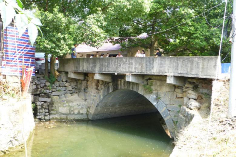 7月20日,與會人員實地考察了零陵區(qū)梳子鋪橋。此橋位于梳子鋪鄉(xiāng)二房村、縣道X031線上,為一座跨徑約6~8米的石拱橋。由于長年疏于管養(yǎng)加之一側擴建,使得拱頂損壞嚴重。此橋是連接梳子鋪鄉(xiāng)和其它鄉(xiāng)鎮(zhèn)的重要橋梁,它的損壞極大地影響了道路交通的正常運營。大家一致認為有必要改建老橋,以提高橋梁的承載能力,改善道路運營條件。此橋的建設將使約15000人獲益。